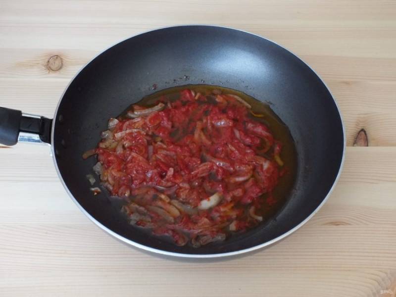 Добавьте томатную пасту, перемешайте, прогрейте и снимите с огня.
