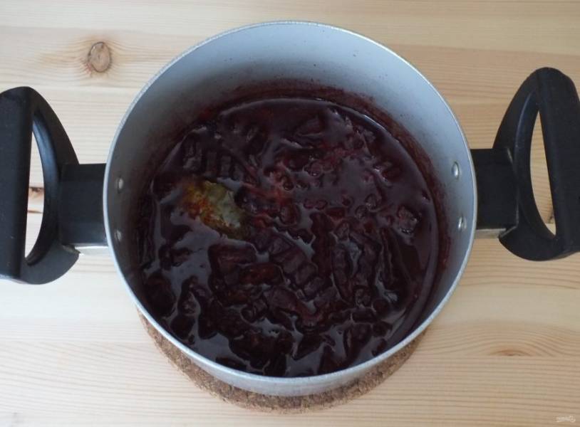 Нарезанную свеклу положите в кастрюлю и залейте водой, в которой она варилась. Но только, чтобы слегка покрыла свеклу.