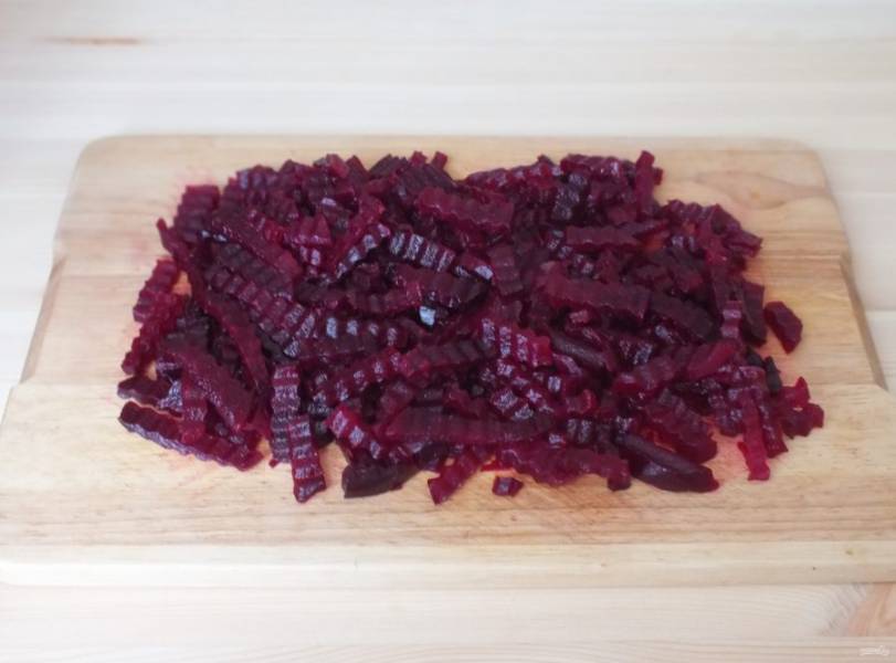 Свёклу нарежьте на произвольные кусочки.