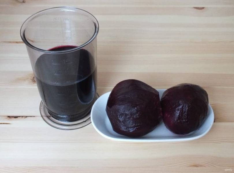 Готовую свеклу очистите. Воду, в которой варилась свёкла, не выливайте.