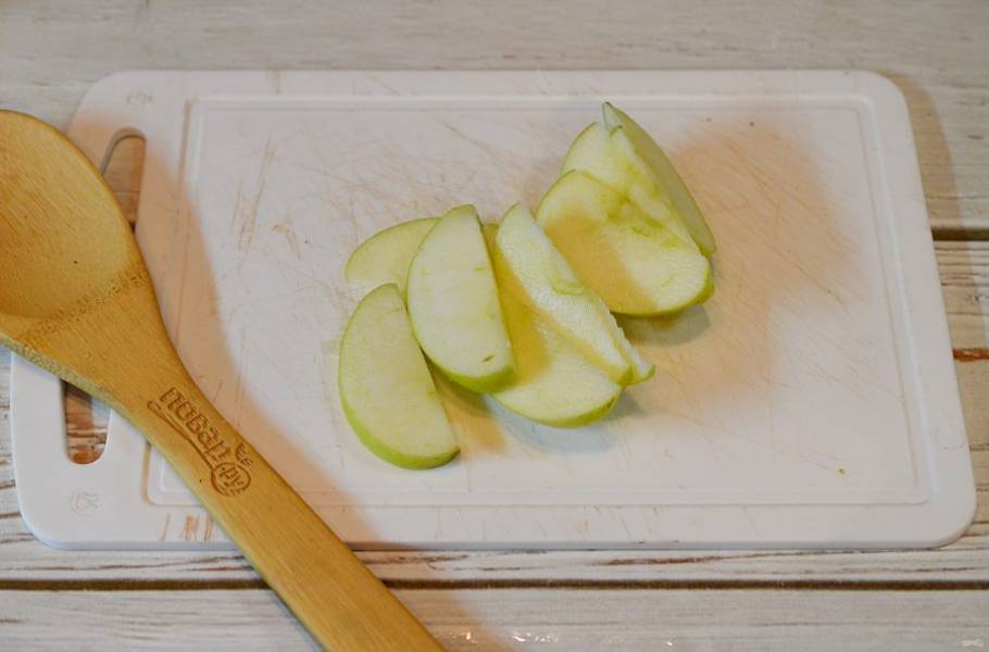 6. Пока тушится мясо, яблоки нарежьте на дольки.