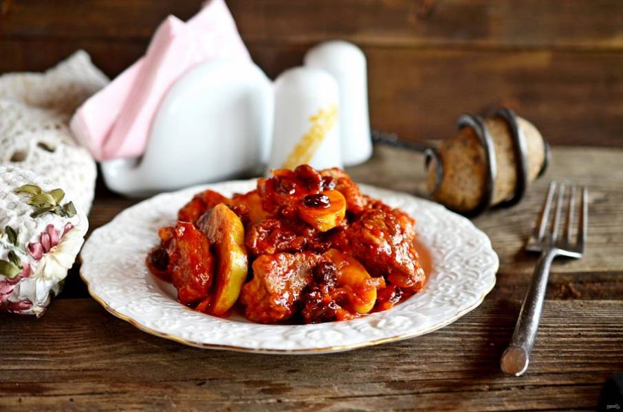 Готовить по этому рецепту можно абсолютно любое мясо: оно получается очень мягким и нежным, в пряном кисло-сладком соусе. Сочетание мяса с фруктами всегда очень вкусное и интересное. Советую приготовить!