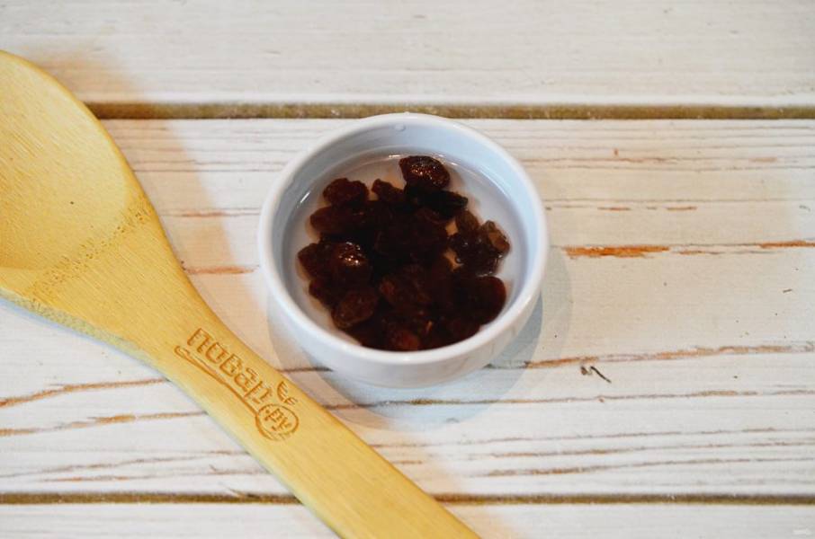 10. Выложите на мясо яблоки и изюм без жидкости.