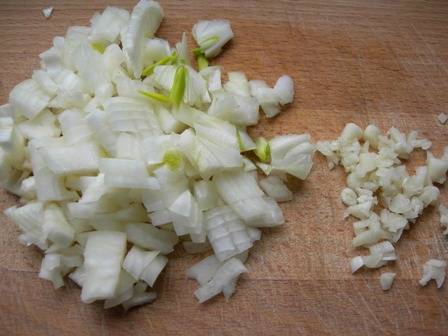 Репчатый лук чистим и измельчаем.