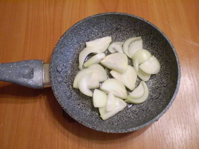 5. Отправьте их к луку и обжаривайте, пока мясо не поменяет цвет, минут 5-7.
