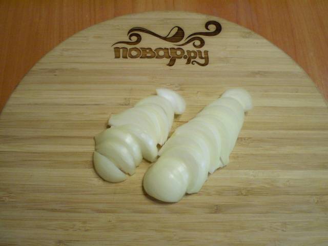 4. Куриные желудочки порежьте на половинки по самому плотному месту.
