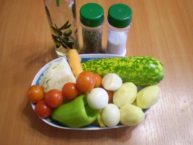 Для этого рецепта подойдут любые сезонные овощи. Сегодня я буду тушить кабачки, помидоры, капусту, картофель и лук.