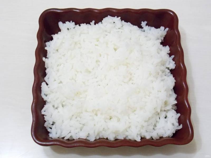 Рис тщательно промойте. Воду вскипятите и посолите. Отварите рис до готовности, промойте и обсушите.