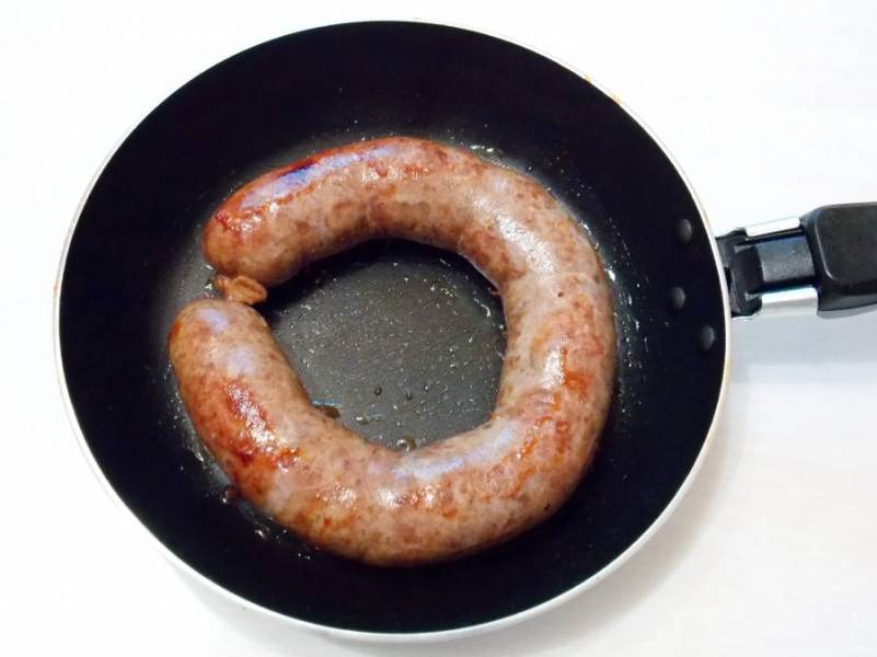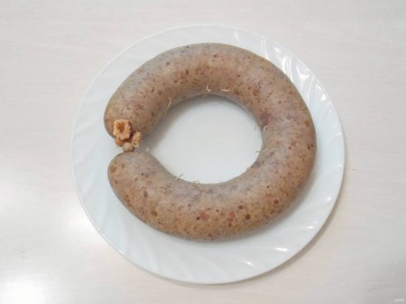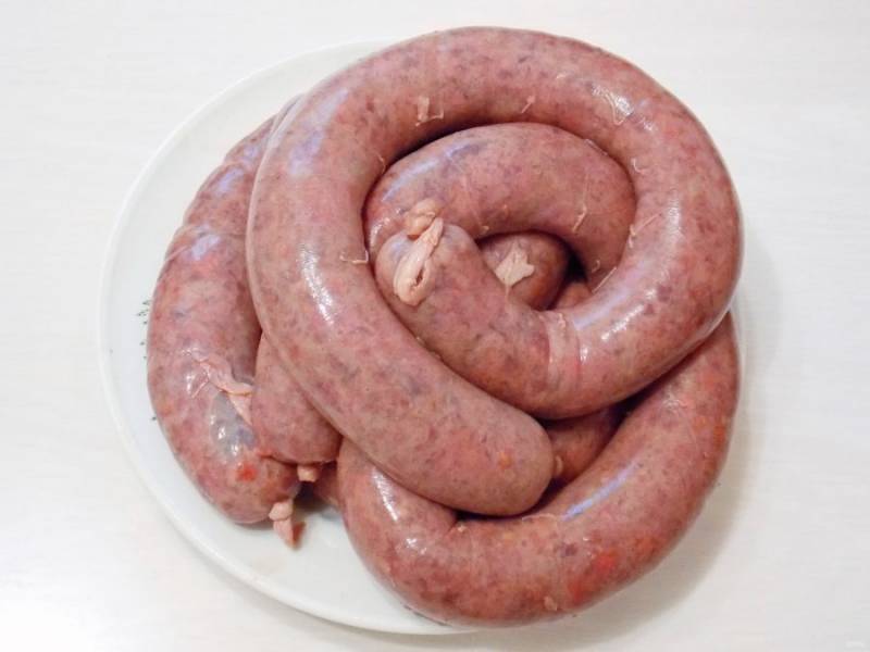 Извлеките и обсушите колбасу.