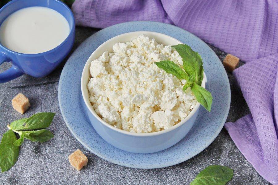 Откиньте все на сито застеленное марлей или в специальный мешок для сыра. Дайте стечь сыворотке и подавайте. Или поставьте творог под гнет и он получится сухим.