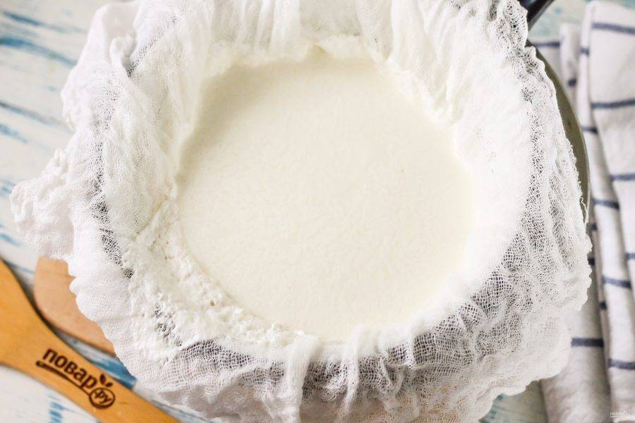 Если нужен творог посуше, то отцедите его от сыворотки в течение 1 часа, подвесив мешочек с творогом на кухонный кран над миской.