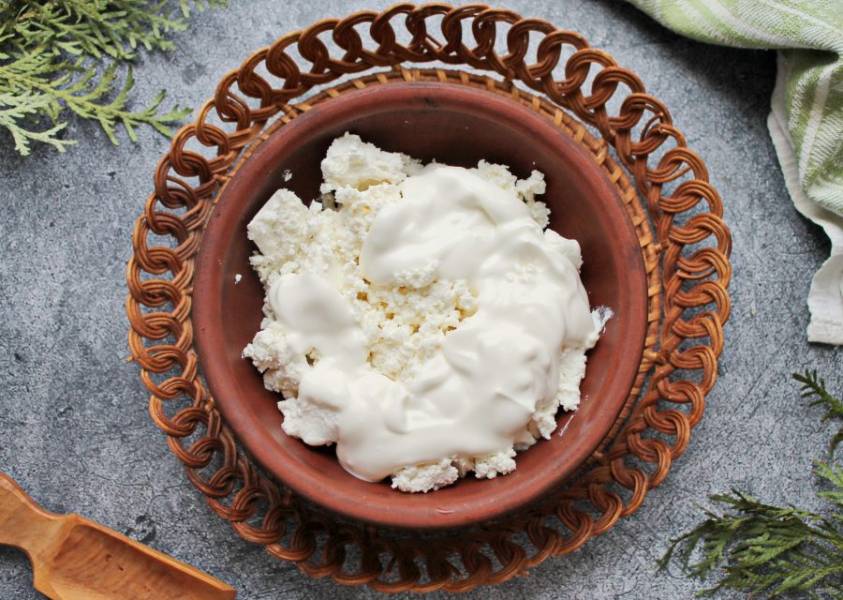 Подготовьте все необходимые ингредиенты для приготовления творога с мацони.