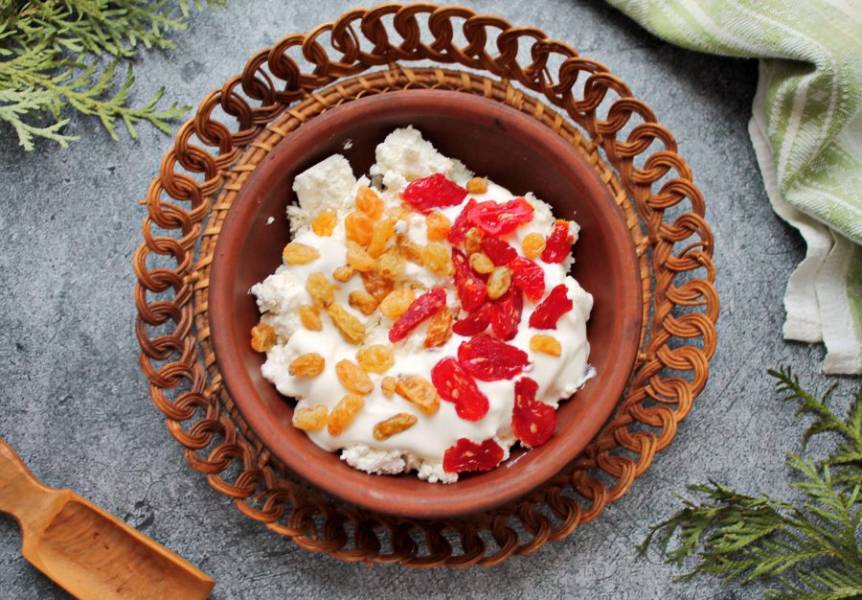 Творог — для многих обычный завтрак. Но его можно сделать еще полезнее, если добавить в него свежий и густой мацони. А для вкуса добавим сухофрукты и сахар. Берите идею на заметку!