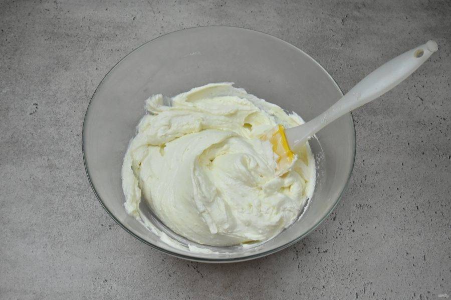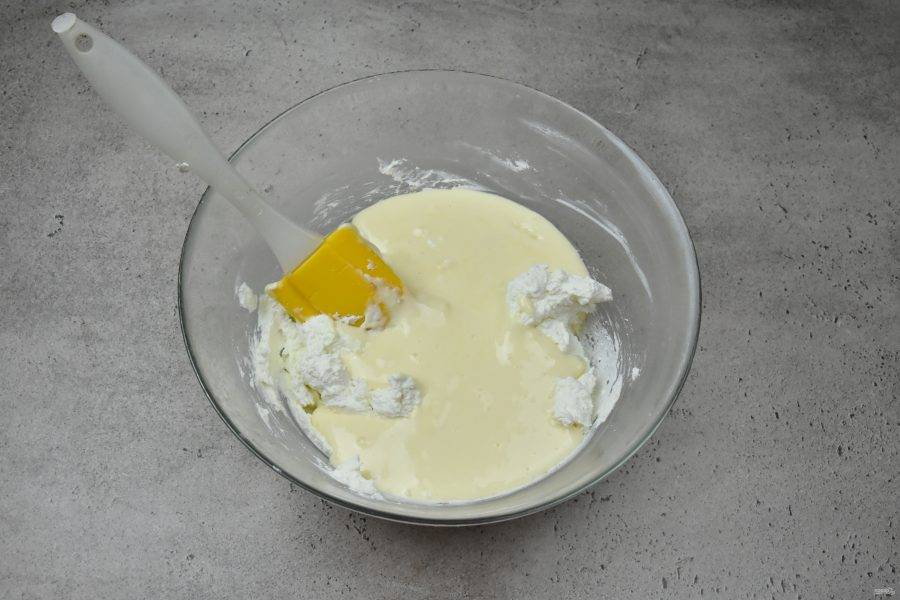 Тщательно, с помощью силиконовой лопатки смешайте творожную массу с заварным кремом.