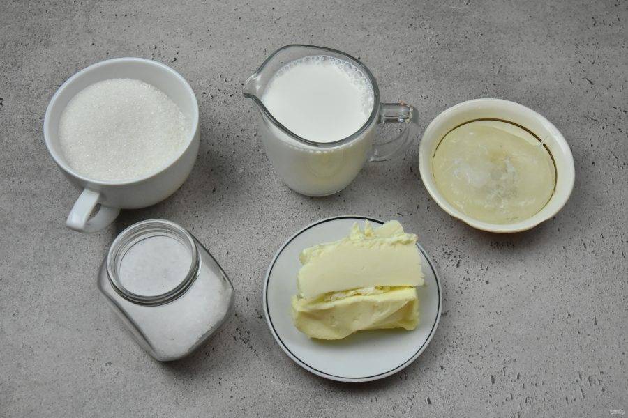 Приготовлением соленой карамели рекомендую заняться заранее. Для приготовления возьмите: 125 грамм сахара, 125 грамм глюкозного сиропа, сливки 180 мл., масло сливочное 75 грамм и 2 грамма морской соли.