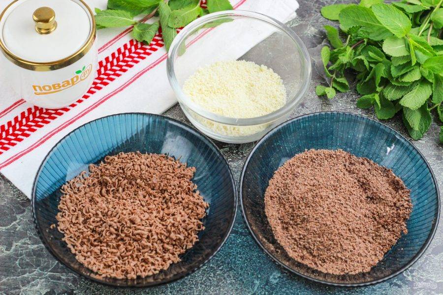 Натрите шоколад в разные мисочки, пиалы. Его можно не растапливать — он и так отлично перемешается с горячей творожной массой.