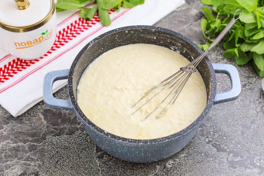 Прогрейте на умеренном нагреве и перемешивайте всю массу, пока она не станет жидковатой. Главное — не доводите до кипения, чтобы сливки не расслоились. По желанию можете отпюрировать массу, чтобы в ней не было комочков. Мне же нравится пасха с творожными комочками.