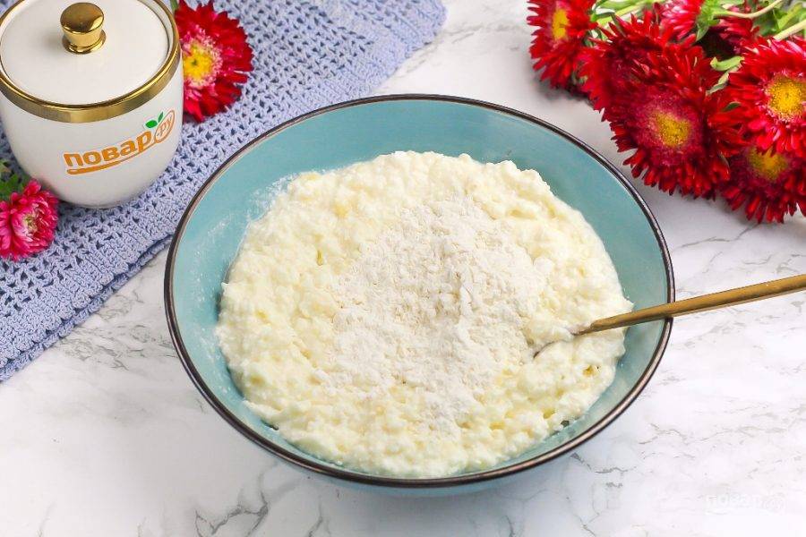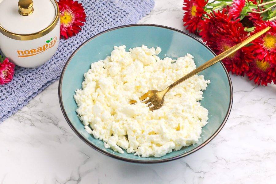 Выложите его в миску и тщательно протрите вилкой, чтобы разбить комки, если такие присутствуют в нем. Если творог суховат, влейте молоко либо вмешайте в него сметану любой жирности.