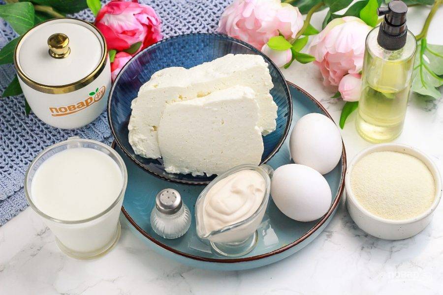 Подготовьте указанные продукты. Приобретите творог, сметану и кефир любой жирности. Если кефир высокой жирности, то сметану можно не использовать.