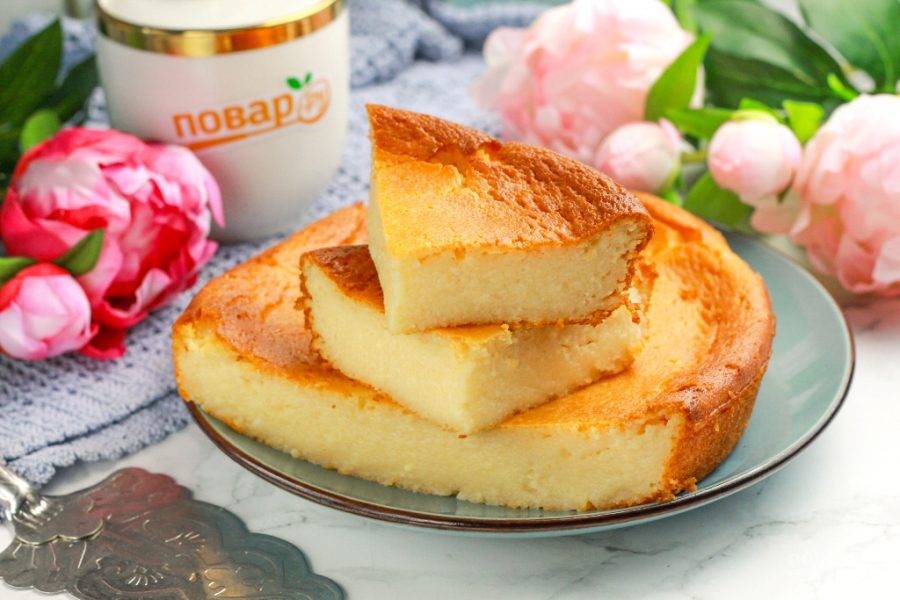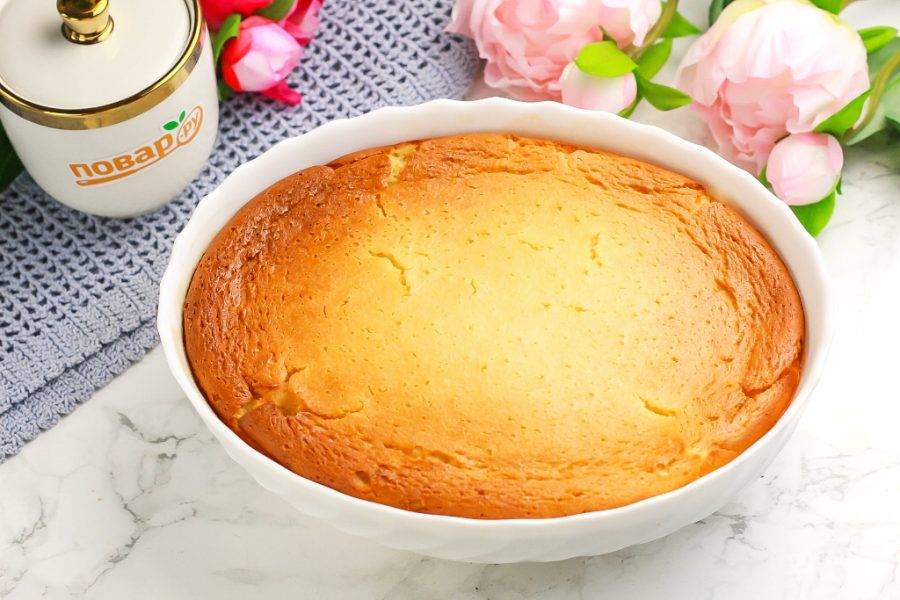 Поместите форму в духовку на средний ярус и разогрейте технику до 160 градусов. Испеките запеканку примерно 40-45 минут, затем повысьте температуру до 180 градусов и допеките десерт еще 15 минут.