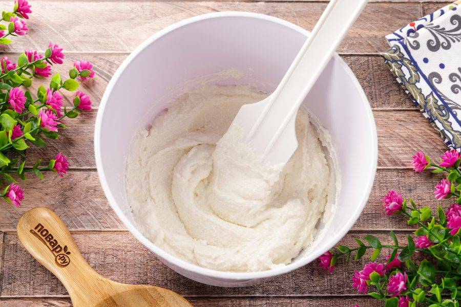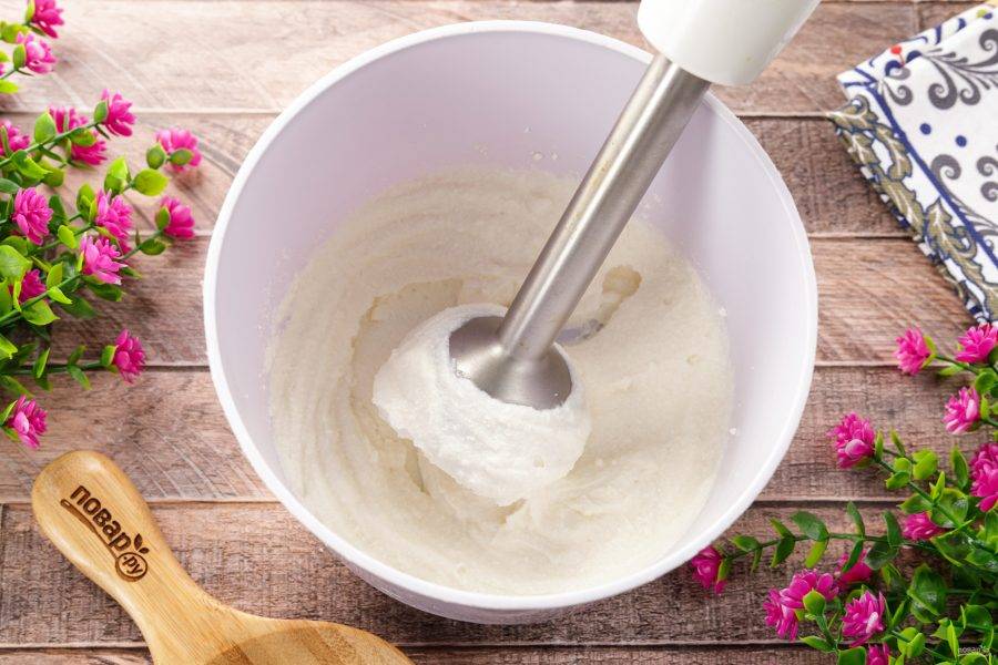 Пробейте массу погружным блендером до однородного состояния.