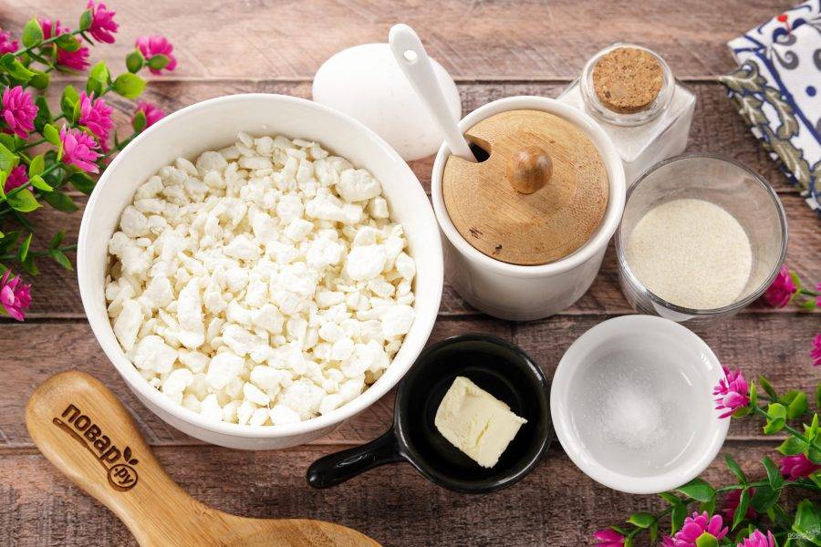 Подготовьте по списку все ингредиенты. Я использую творог 5% жирности, но можно взять и обезжиренный.