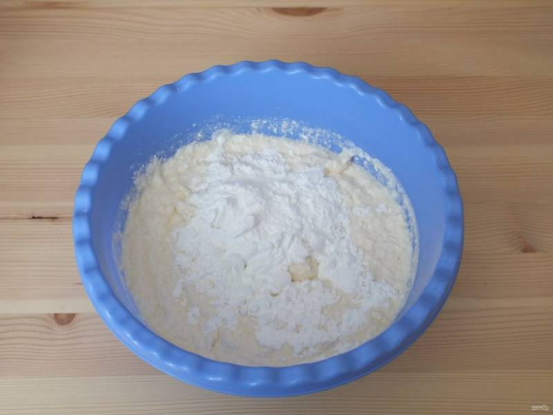 Добавьте крахмал и еще раз хорошо перемешайте. Включите духовку на 180 градусов.