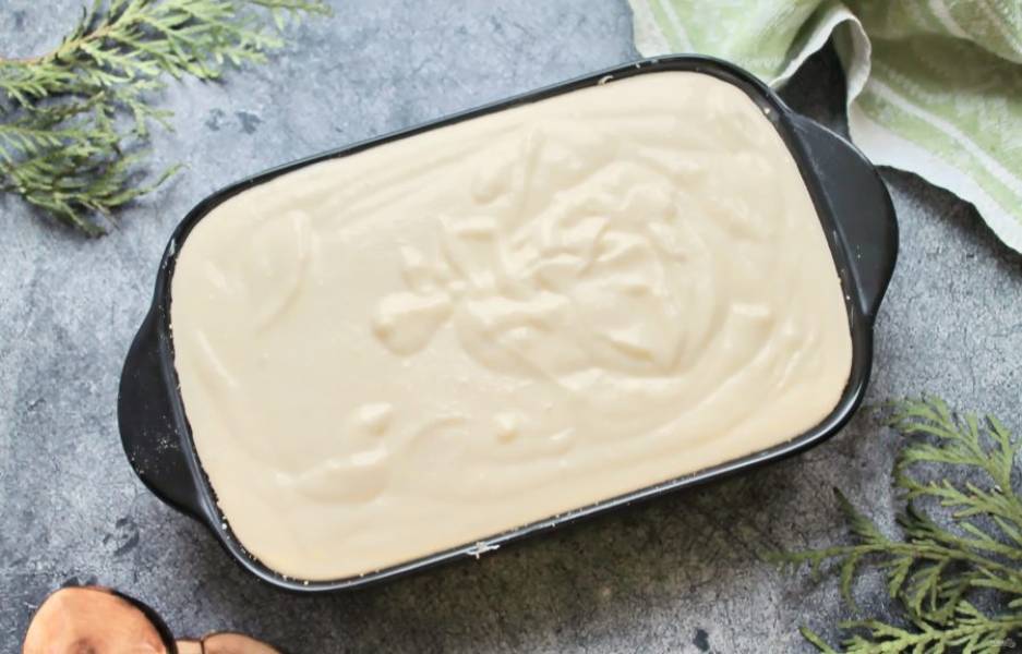 Форму с запеканкой поставьте в горячую духовку и запекайте при температуре 180 градусов в течение 30-35 минут, до готовности. Готовую запеканку остудите в форме и подавайте к столу.