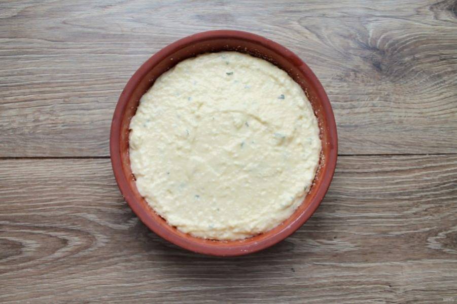 Форму для запекания смажьте растительным маслом, переложите творожную массу и разровняйте.