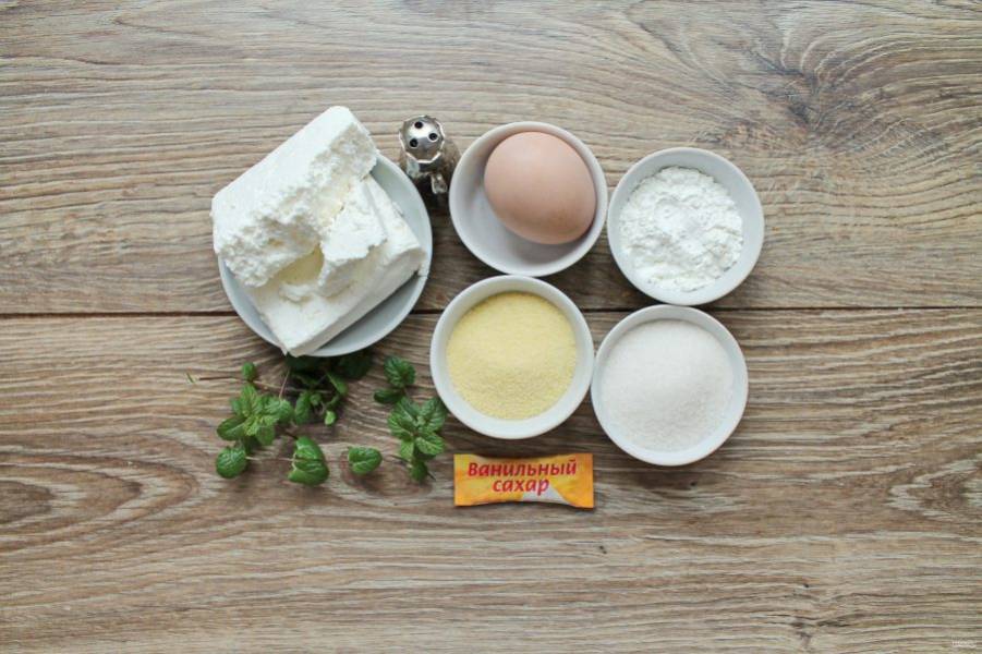 Подготовьте все необходимые ингредиенты для приготовления творожной запеканки с мятой. Веточки мяты вымойте и обсушите.