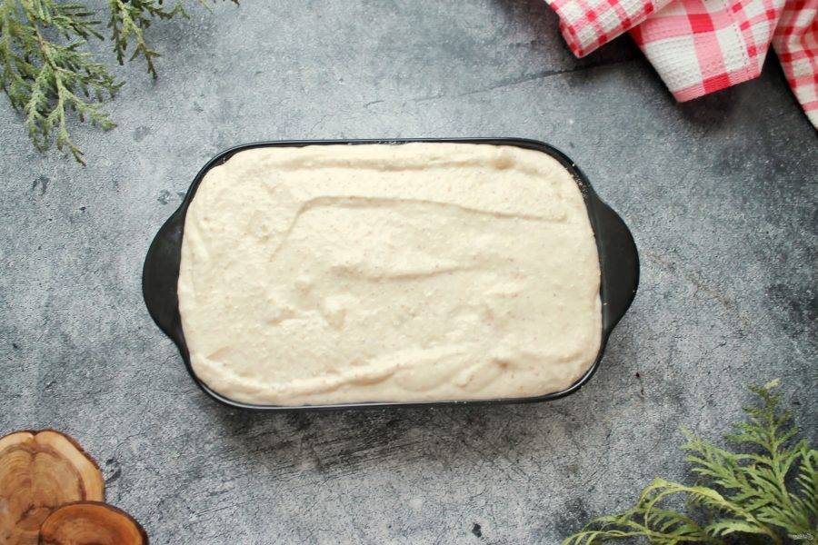 Форму для запекания смажьте растительным маслом и переложите в нее творожную массу, разровняйте.