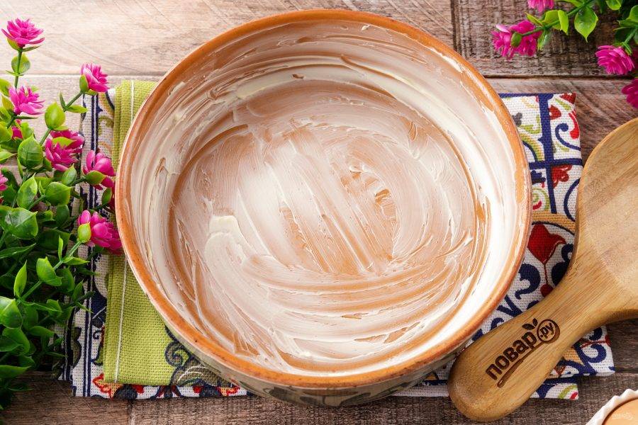 Жаропрочную форму смажьте мягким сливочным маслом. Если используете силиконовую форму, то смазывать ничем не нужно.