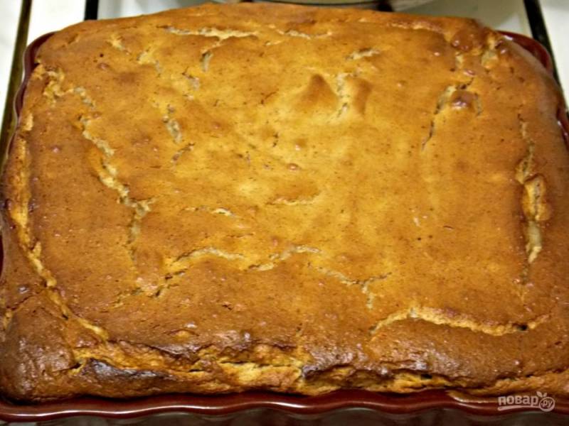 Положите массу в смазанную форму 18*18 и разровняйте. Запекайте при t=170 примерно 30-40 минут, до готовности. Остудите.
