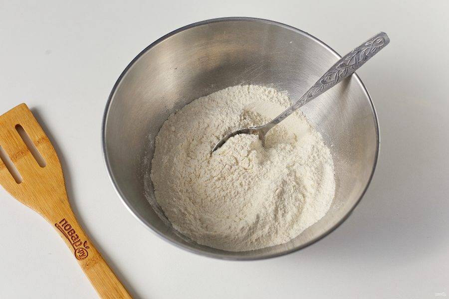 Соедините муку, сахар, корицу, соль и разрыхлитель.