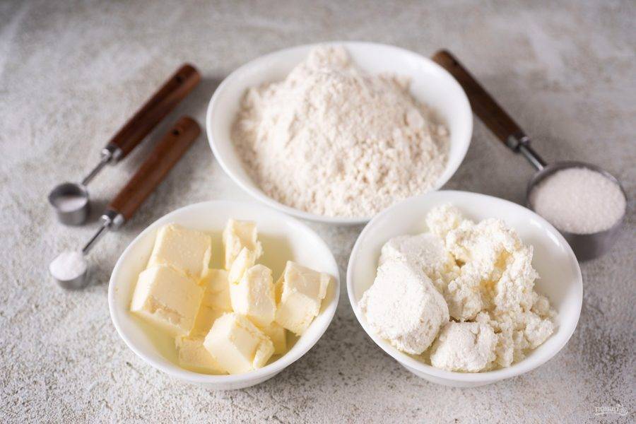 Все ингредиенты сразу же подготовьте на рабочем столе. Масло сливочное можно достать заранее из холодильника, чтобы оно успело стать мягким. Муку удобнее заранее просеять.