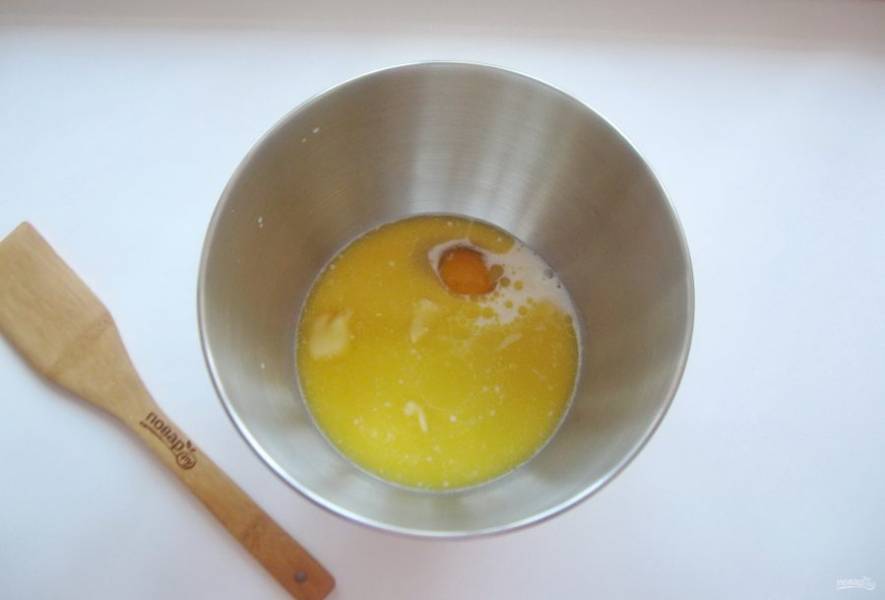 Влейте растопленное сливочное масло.