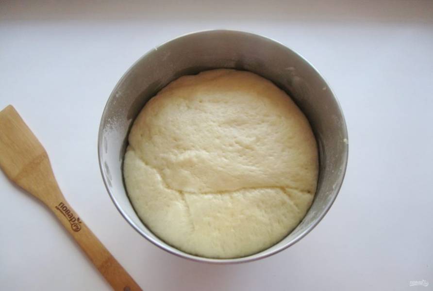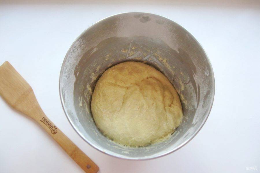 Замесите эластичное тесто, которое немного липнет к рукам. Накройте миску полотенцем и поставьте в теплое место.
