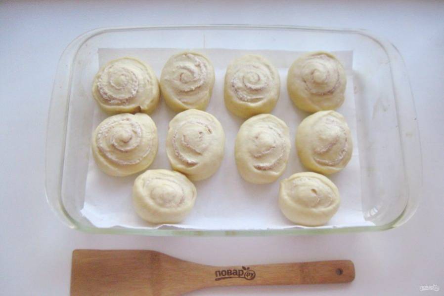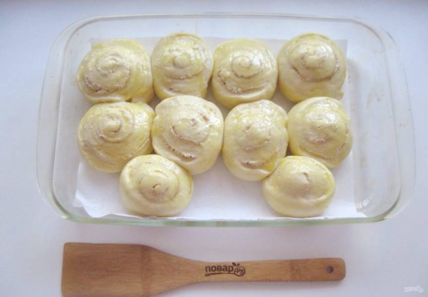 Выложите булочки в форму и поставьте в теплое место на 25-30 минут для расстойки.