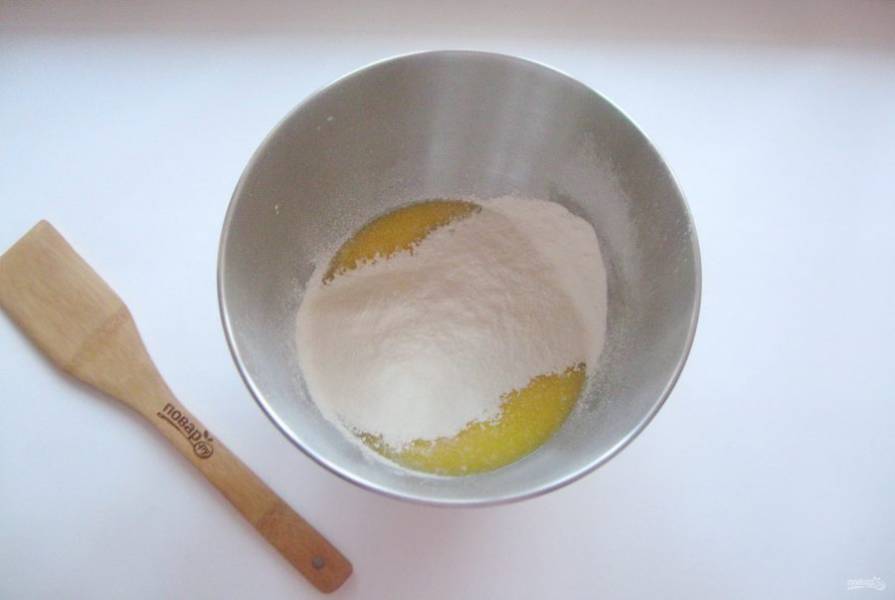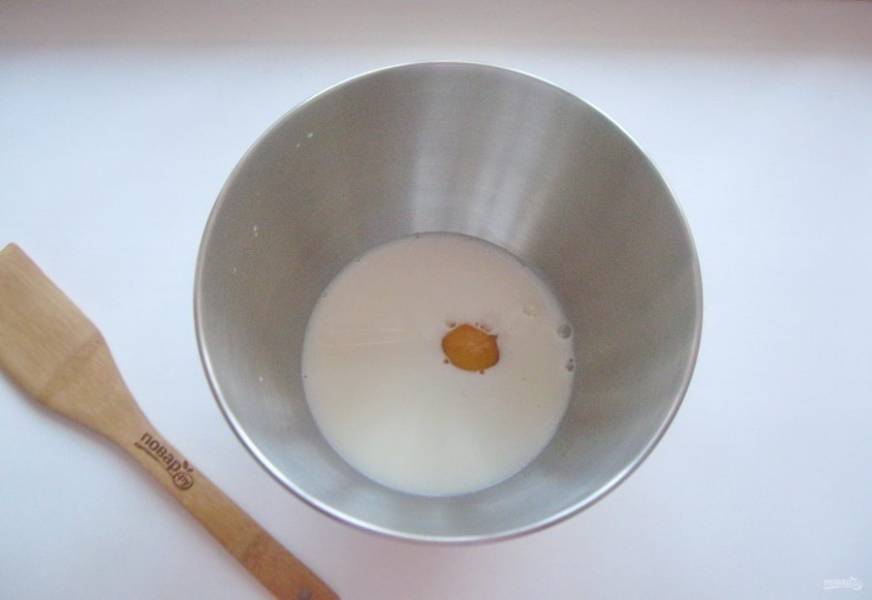 Добавьте яйцо, соль и сахар.