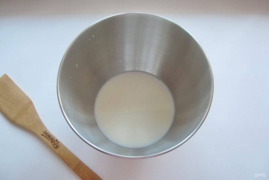 Влейте теплое молоко.