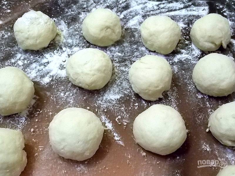 Разделите тесто на кусочки величиной с грецкий орех и скатайте шарики.