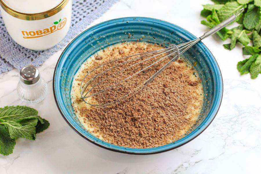 Всыпьте пшеничную муку и разрыхлитель, вмешайте их в жидкую массу.