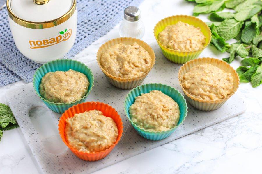 Выложите тесто в формочки для кексов и отправьте в разогретую до 180 градусов духовку.