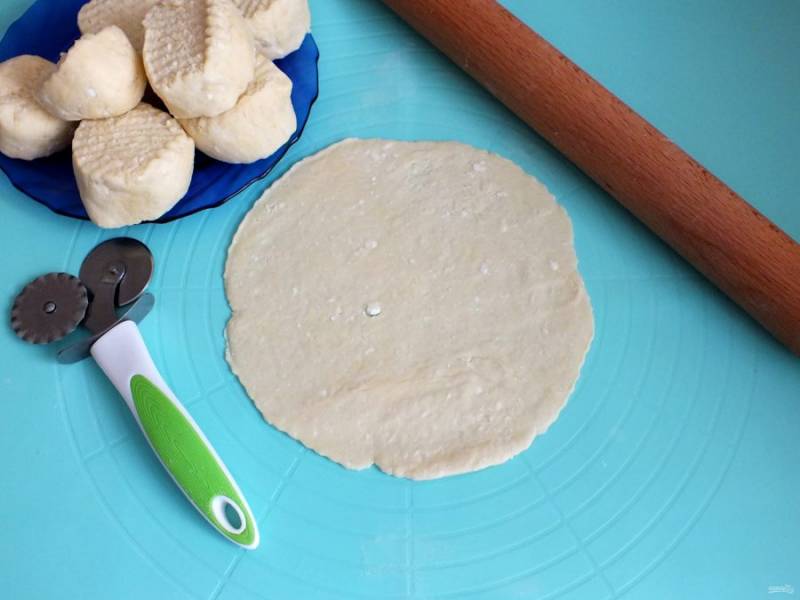 Каждую часть раскатайте в тонкий сочень. Диаметр, в моем случае, получился 17,5 см. Обрежьте, приложив тарелку. Обрезки складывайте отдельно, из них получатся еще 1-2 коржа.