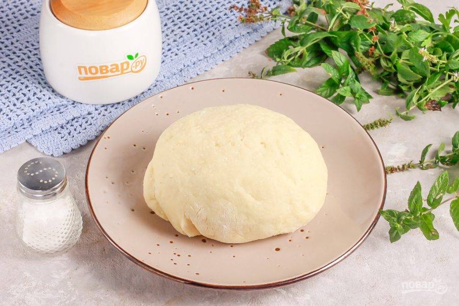 Замесите мягкое, пластичное тесто, стараясь не забивать его мукой. Накройте тесто пищевой пленкой и поместите в холодильник на 15-20 минут.