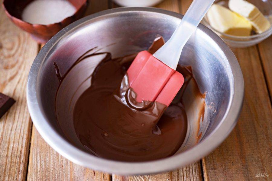 Растопите полностью шоколад до получения однородной смеси, при этом постоянно помешивая лопаткой.