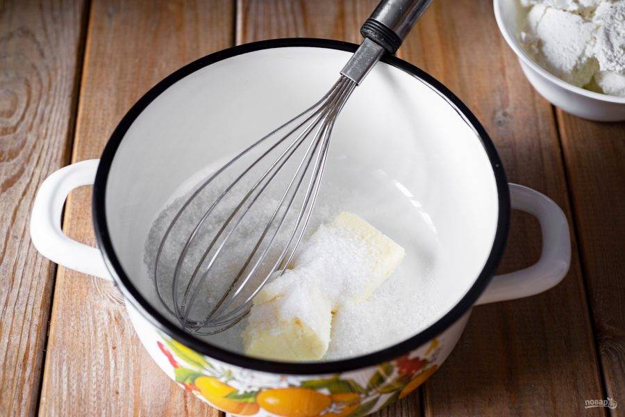 За это время в кастрюльку выложите сливочное масло и сахар.