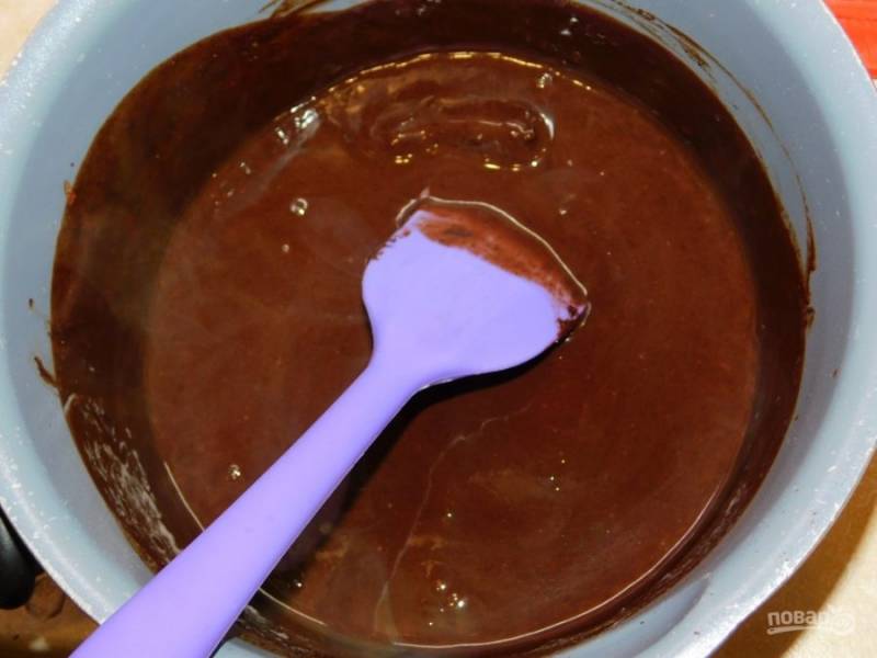 Влейте шоколадную массу и перемешайте до однородной консистенции.