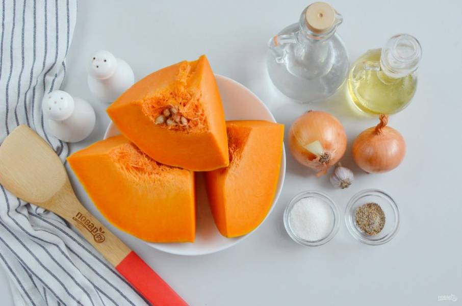 Подготовьте ингредиенты. Вес тыквы указан уже в очищенном виде.