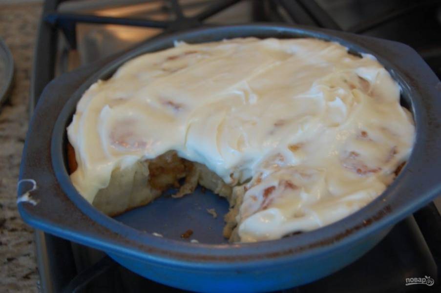 18. Оставшееся сливочное масло комнатной температуры взбейте со сливочным сыром, солью, ванилью до образования единой массы. Смажьте глазурью еще теплую выпечку.
